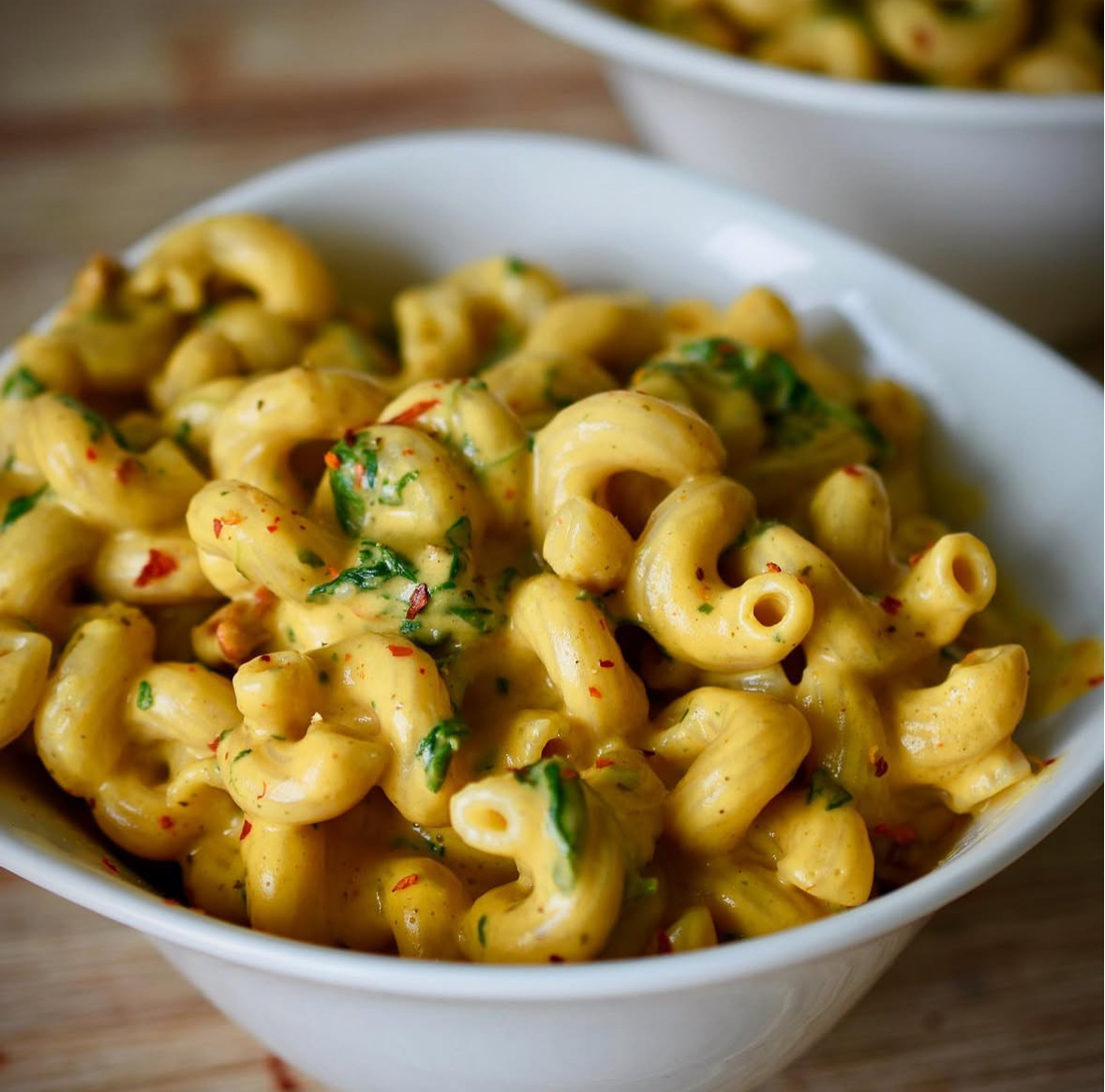 Spinach and sun-dried tomatoes bring this vegan mac n cheese to life. The spinach melts into the hot pasta, adding freshness, color, and a boost of nutrients. Sun-dried tomatoes contribute a savory, slightly tangy note that contrasts beautifully with the creamy sauce. Together, they turn a simple bowl of pasta into a flavorful, well-rounded meal.